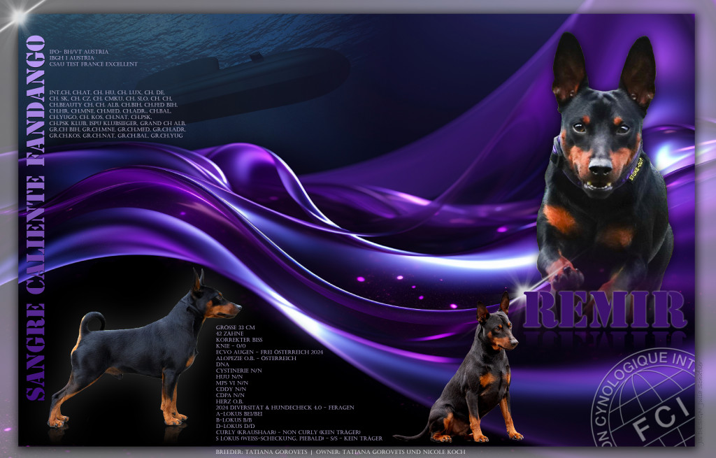 Titel: INT.CH, CH.AT, CH. HU, CH. LUX, CH. DE, CH. SK, CH. CZ, CH. CMKU, CH. SLO, CH. CH, CH.Beauty CH, CH. ALB, CH.BIH, CH.FED BIH, CH.HR, CH.MNE, CH.MED, CH.ADR., CH.BAL, CH.YUGO, CH. KOS, CH.NAT, CH.PSK, CH.PSK KLUB, ISPU KLUBSIEGER, Grand CH ALB, GR.CH BIH, GR.CH.MNE, GR.CH.MED, GR.CH.ADR, GR.CH.KOS, GR.CH.NAT, GR.CH.BAL, Gr.CH.YUG
